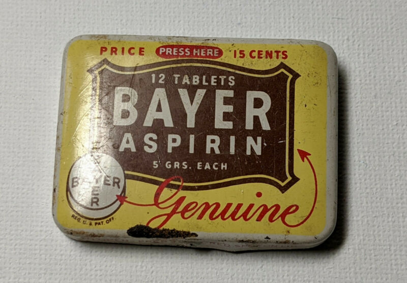 Vintage empty 15 cent Bayer Tablets Aspirin tin can