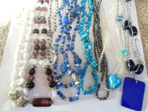 Title (ebay affiliate link): Vintage LOT of 8 Crystal & Blue Amethyst Milk GLASS Beaded Necklaces Wear Crafts