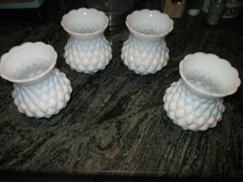 Title (ebay affiliate link): Set of 4 Vintage White Milk Glass Ribbed Lamp Shade Globe Light Bell Shape