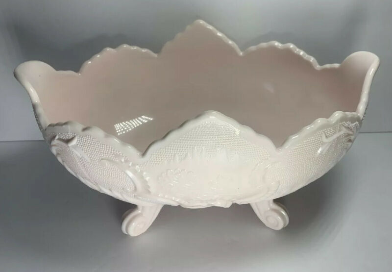 Title (ebay affiliate link): Jeanette Shell Pink Milk Glass Oval Footed Centerpiece Bowl