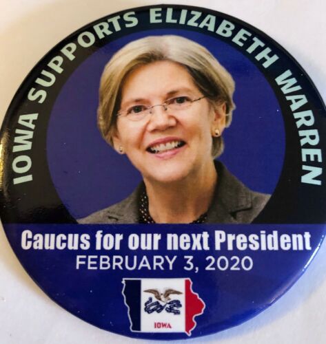 Title (ebay affiliate link): 3" Iowa Supports Elizabeth Warren Caucus for our Next Prez Feb. 3., 2020 Pinback