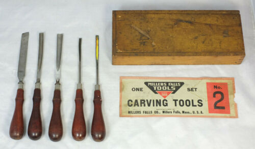 Title (ebay affiliate link): 5 Vintage Millers Falls No. 2 Wood Carving Tools