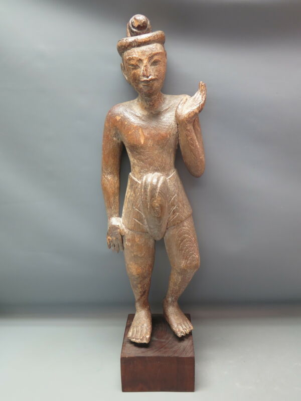 Vintage Burmese Carved Wooden Male Figure Sculpture Statue ~28" H