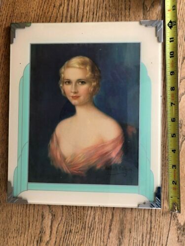 Title (ebay affiliate link): Fine Original 1930s Art Deco Reverse Painted Glass Picture Frame with Easel Back