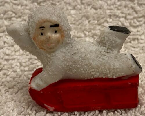 Title (ebay affiliate link): Vintage Antique German Bisque Tiny/Small Snow Baby On Red SLED FIGURINE Germany