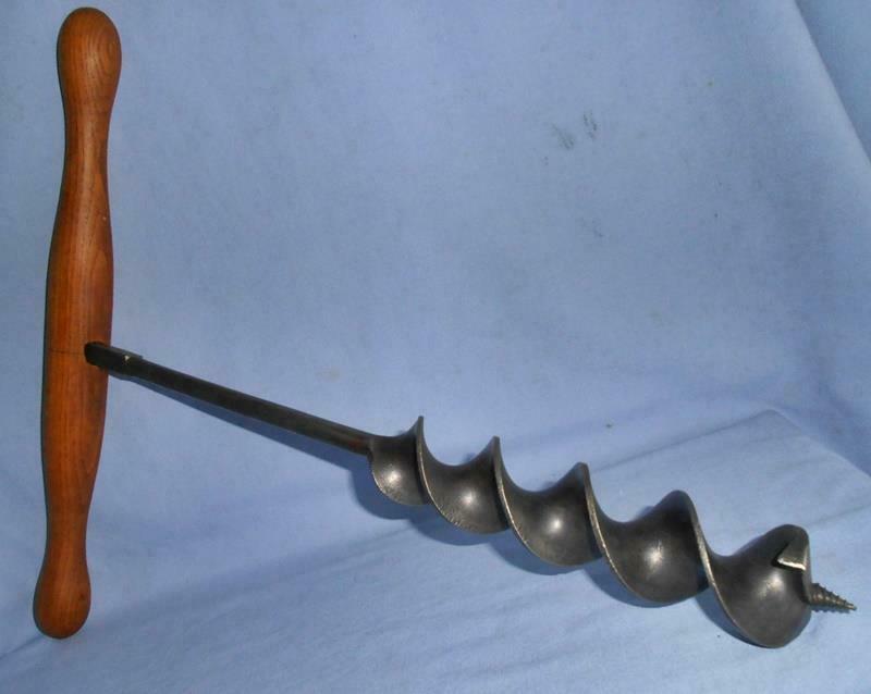Antique W.A. Ives 1 3/4" Barn Beam Hand Auger Drill w/ Wood Handle Old Vtg Tool
