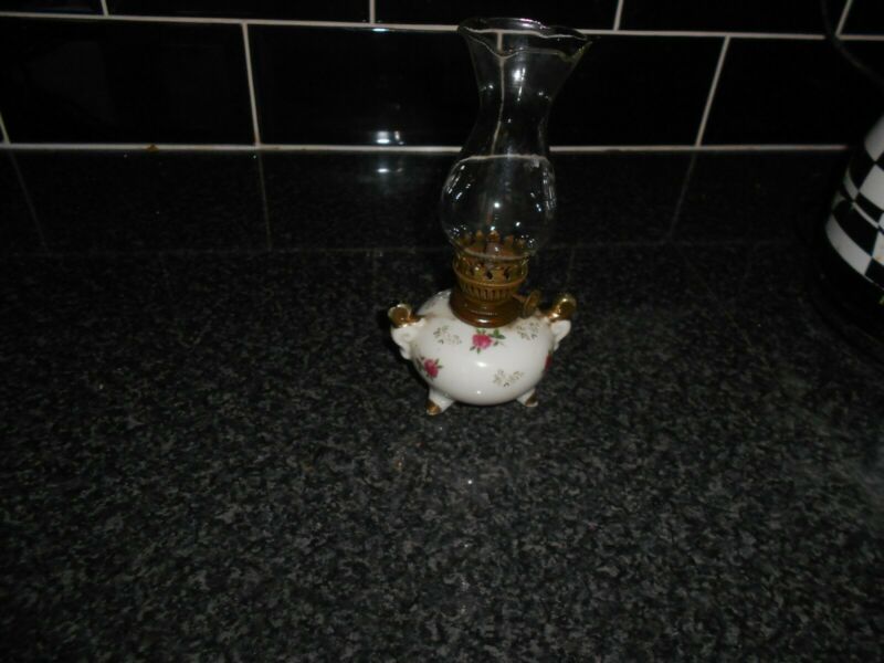 SMALL OIL LAMP WITH GLASS CHIMNEY