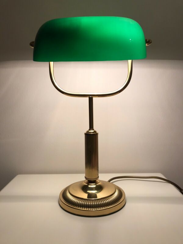 Title (ebay affiliate link): Vintage Bankers Brass & Green Glass Office/Study Desk Lamp