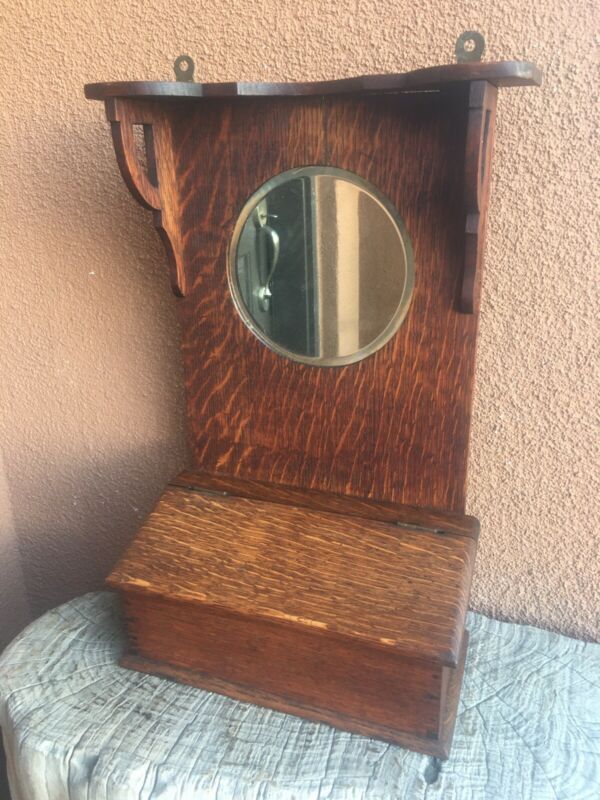 Title (ebay affiliate link): ANTIQUE TIGER OAK WOOD WALL HANG MEDICINE CABINET CANDLE CUPBOARD BOX MIRROR