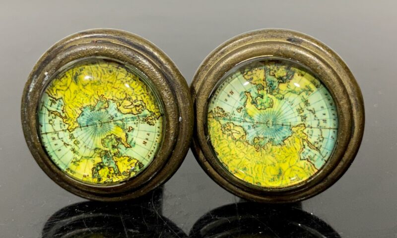 Vintage 2pc Architectural Furniture Salvage World Map Atlas Drawer Pull Knobs