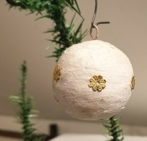 Title (ebay affiliate link): White Cotton Snowball, with Gold Dresden Stars. 1890s Spun Cotton German Orn.