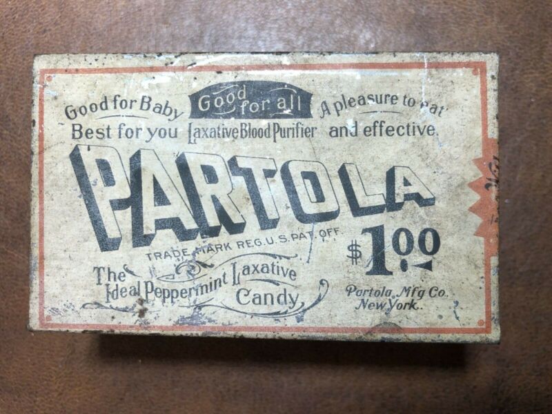 Title (ebay affiliate link): PARTOLA "THE IDEAL PEPPERMINT LAXATIVE CANDY - LAXATIVE BLOOD PURIFIER" TIN