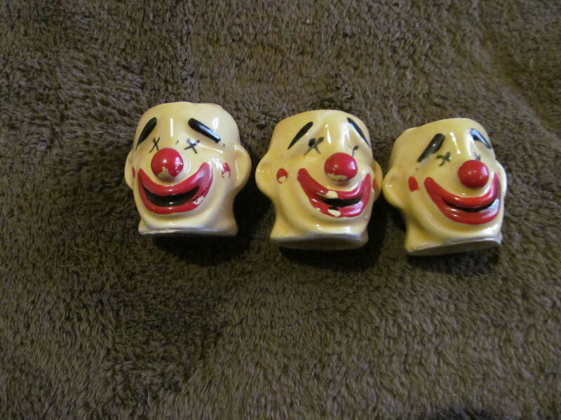 3 Fabulous Vintage Hanging Clown Head Cups - Japan - Must See These Oldies!!!!