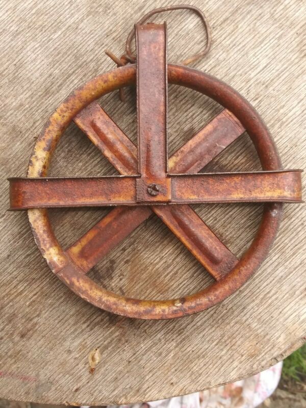 I44 - Vtg 5.5 Inch Metal Rope Pulley