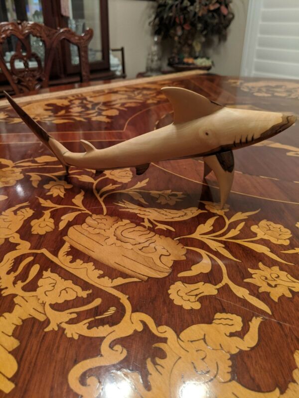 Wooden Carved Shark Folk Art Sculpture Decor Nautical Sea Life