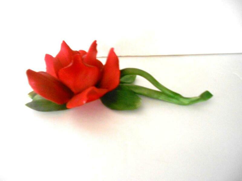 Title (ebay affiliate link): VINTAGE CAPODIMONTE RED FLOWER GREEN LEAVES 2" TALL X 8" LONG