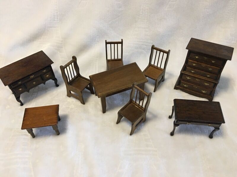 Title (ebay affiliate link): 1/12 scale Vintage dollhouse Doll Furniture Lot Antique Dresser Chest Desk Table