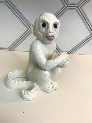 Title (ebay affiliate link): Vintage Porcelain~Hand Painted Ceramic White spider Monkey holding fruit statue