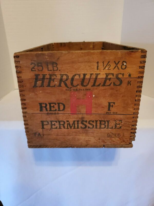 VTG Wooden Explosives Crate Box HERCULES POWDER Finger Jointed
