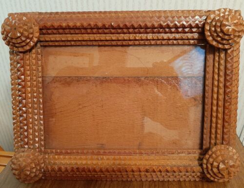 Outstanding Vintage TRAMP Folk ART Wooden Frame with Glass