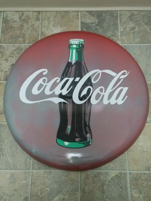 Title (ebay affiliate link): Vintage Coca Cola Coke Bottle 20" ROUND METAL ADVERTISING BUTTON SIGN 1990 Rare