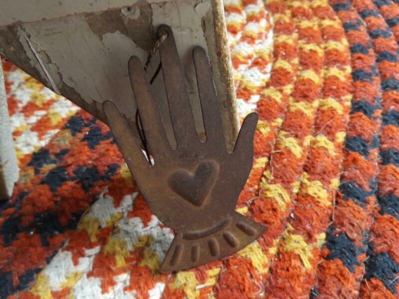Title (ebay affiliate link): Primitive Tin Hand With Heart Relief Center GREAT Rusty Patina Hanger