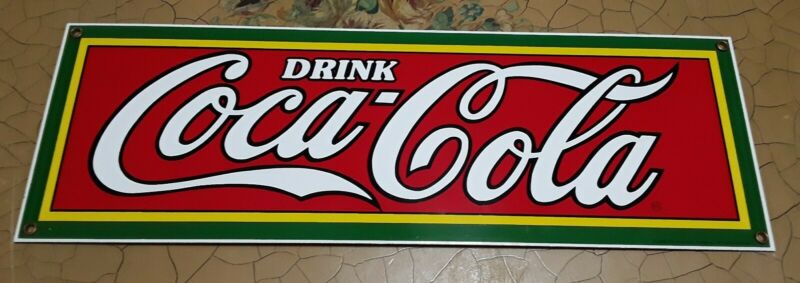 Title (ebay affiliate link): Porcelain Enameled Advertising Sign Drink Coca-Cola Coke 18" x 6" Ande Rooney