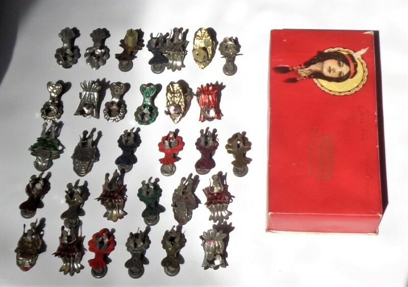 Title (ebay affiliate link): VINTAGE GERMAN CHRISTMAS TREE CANDLE HOLDERS. 30. AMERICAN CHOCOLATE BOX.