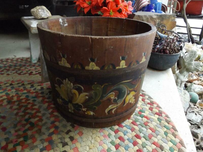 Title (ebay affiliate link): Large Primitive Antique Wood Stave Bucket Iron Bands Folk Art Tole Painted