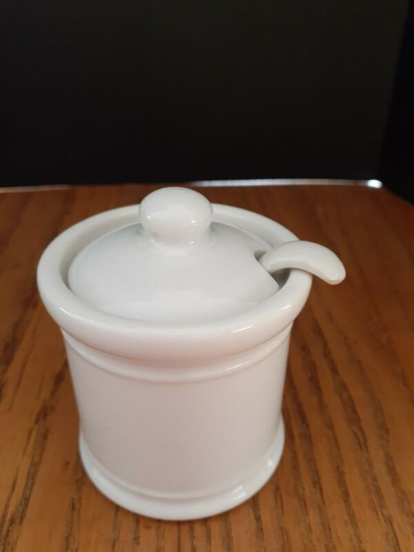 RARE Vintage white Ironstone MUSTARD JAR, LID AND SPOON-Restaurant ware Farm