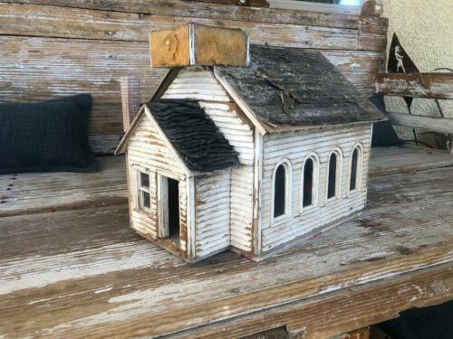 Antique Folk Art Miniature Church Handmade Diorama Wood Dollhouse **NEEDS WORK**