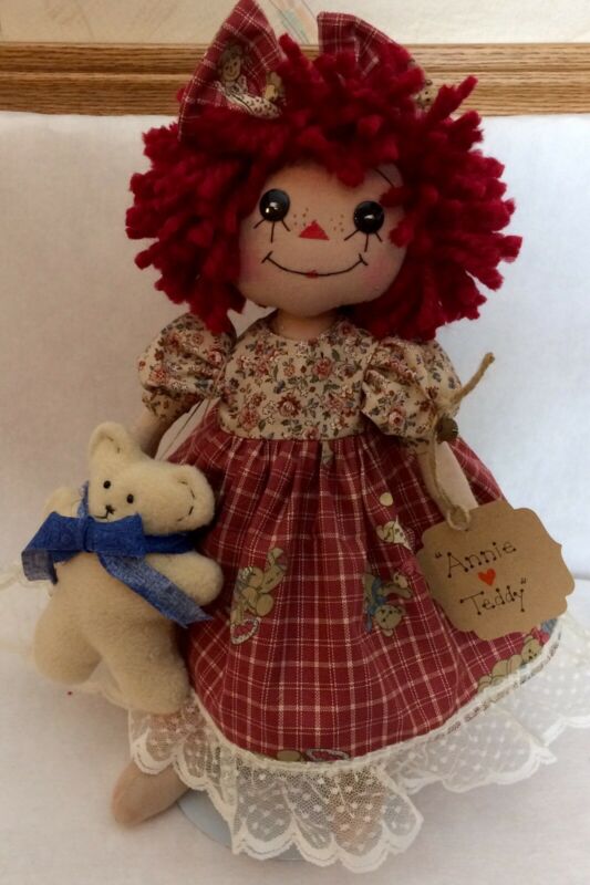 Title (ebay affiliate link): Primitive Raggedy Ann Doll with Bear Shelf Sitter "Annie Loves Teddy"