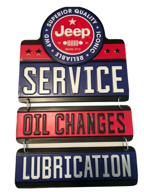 Title (ebay affiliate link): JEEP SERVICE LINKED EMBOSSED TIN SIGN. -- Wrangler Oil Chang & Lubrication New