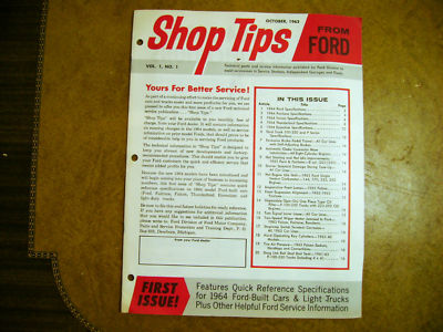 Title (ebay affiliate link): 10/1963 Ford Shop Tips FIRST ISSUE Vol 1 No 1 1964 NOS