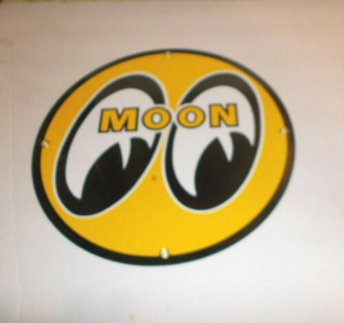 Title (ebay affiliate link): MOONEYES, PORCELAIN SIGN - 12" diameter YELLOW/BLACK/WHITE