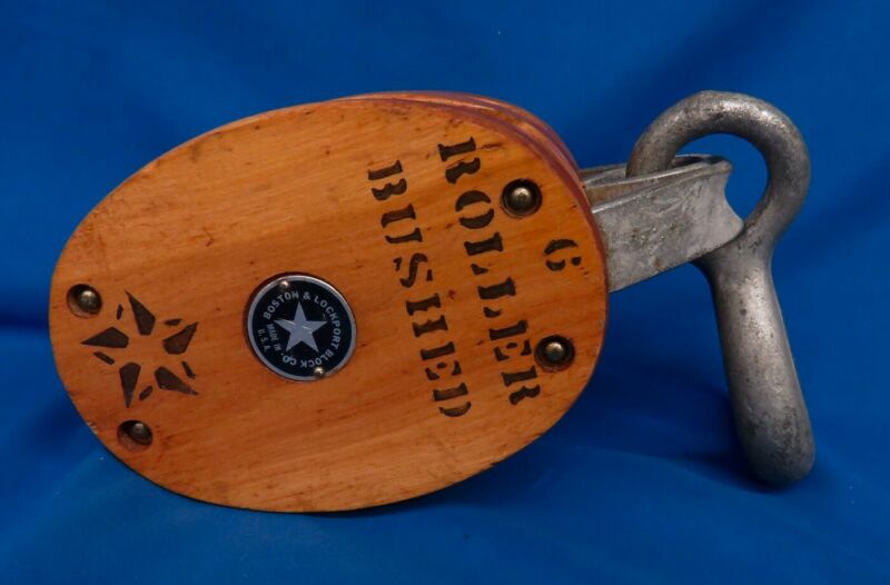 Title (ebay affiliate link): Stenciled Boston & Lockport Block Co. Wood Double Pulley