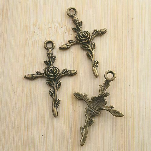 10pcs antiqued bronze flower cross pendant G1405