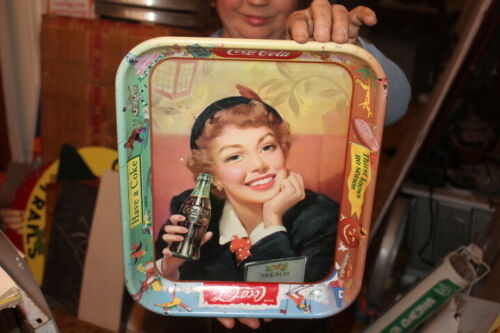 Vintage 1950''s Coca Cola Soda Pop Metal Serving Tray Gas Oil Sign