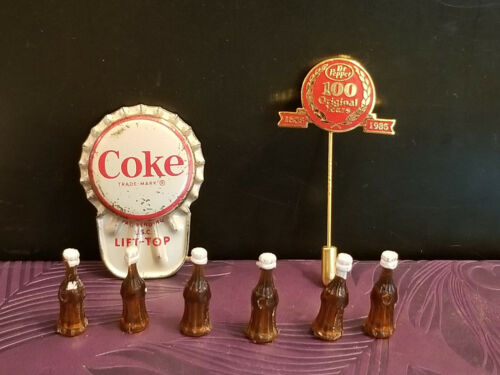 Title (ebay affiliate link): Vintage COCA COLA COKE Dr Pepper 8pc Collection Pat Pend Lift-top Mini Bottles