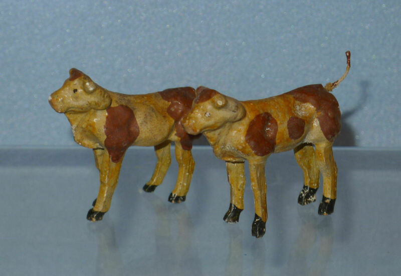 Lot of 2 Antique Putz Stick Leg COWS, Two old Vintage Farm Animals, Paper,German