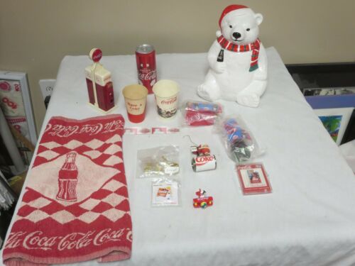 Title (ebay affiliate link): LOT OF 14 COCA COLA ITEMS BEAR COOKIE JAR, S & P SHAKERS, PINS, CUPS, CAN ++