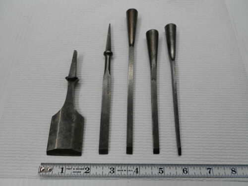 Vintage Lot 5 Socket Tang Wood Mortise Chisel Bevel Carve Tool WITHERBY BUCK USA