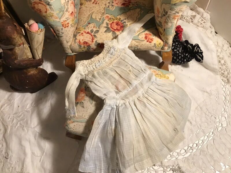 Title (ebay affiliate link): Antique 9-1/2" Hand Made Faded Blue & White Cotton Doll Dress - Pattern/Display