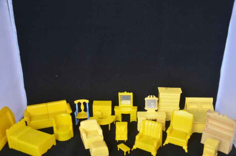 Title (ebay affiliate link): 19 Piece Renwal Dollhouse Kitchen Set of Yellow Furniture, Assorted scale