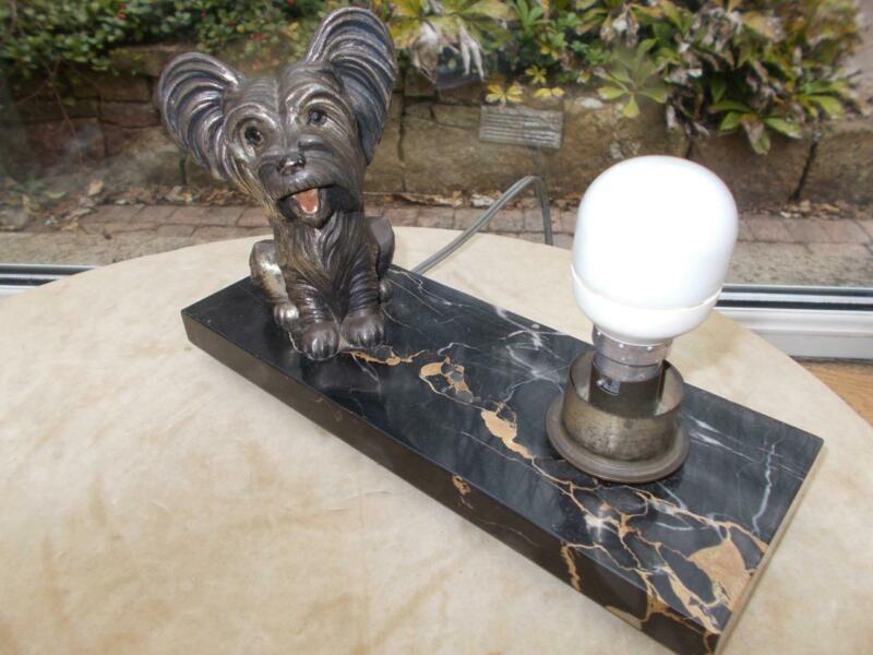 Title (ebay affiliate link): 1920-30S ART DECO ERA MARBLE LAMP METAL CUTE TERRIER DOG NEEDS SHADE