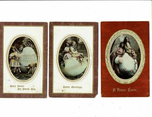 Title (ebay affiliate link): 3 Card Lot, Easter Holiday, Girls With Giant Egg, 2 As Angels, Sheep!