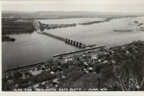 Title (ebay affiliate link): Alma Dam From Buena Vista Bluff. Alma Wisconsin Real Photo postcard