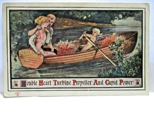 1910 SIGNED COBB SHINN POSTCARD DOUBLE HEART TURBINE PROPELLER, CUPID POWER