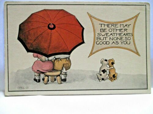 Title (ebay affiliate link): 1910 POSTCARD BOY & GIRL UNDER UMBRELLA,DOGS - THERE MAY BE OTHER SWEATHEARTS