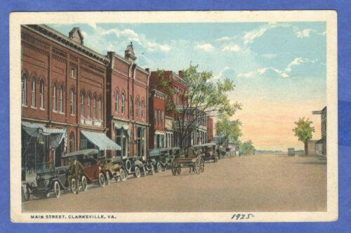 Clarksville, Virginia, Main Street, Old Cars, Store Fronts, Postcard 1925